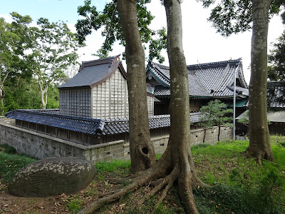 この神社の裏は、「日和山遊歩道」があって散歩コースとなっている。海岸林の向こうは日本海が見える。この途中に「弁吉顕彰碑」が立っている。からくり師大野弁吉は、幕末日本のレオナルドダヴィンチの異名を持つ発明家で、銭屋五平の知恵袋ともいわれた。この砂山の下に弁吉の屋敷があったという。